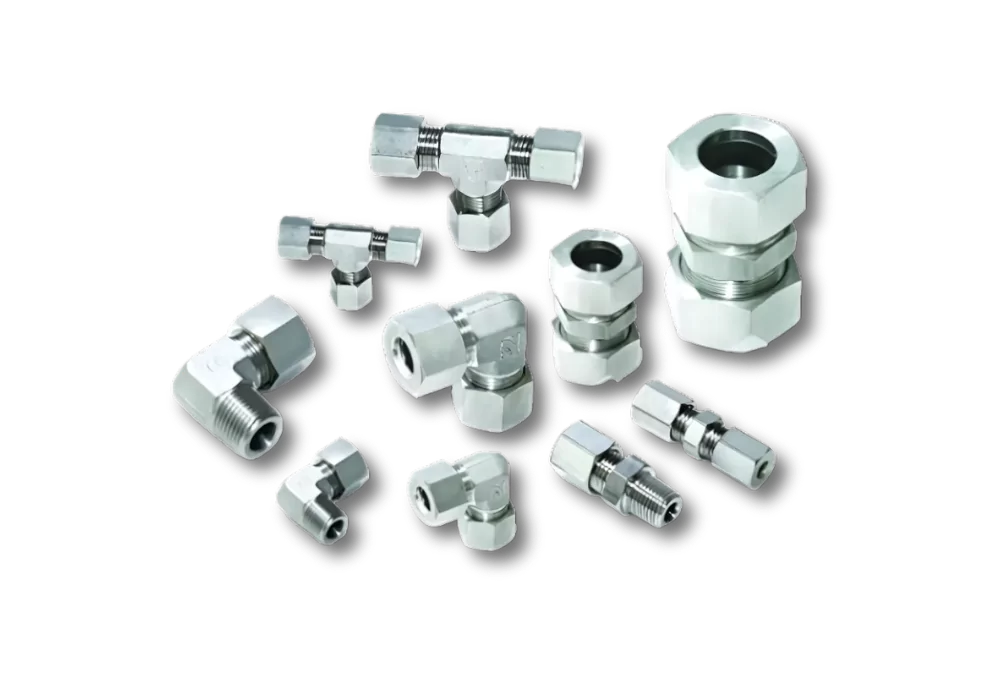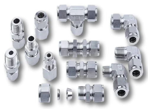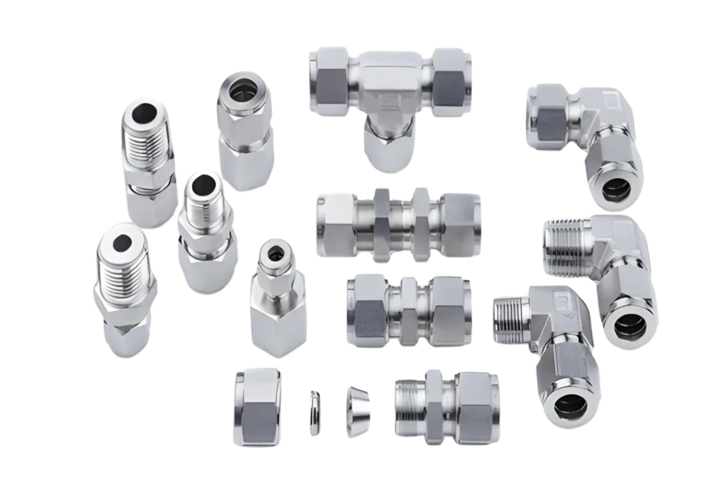 Compression fittings for tubing; two ferrules create robust, leak-tight seal.